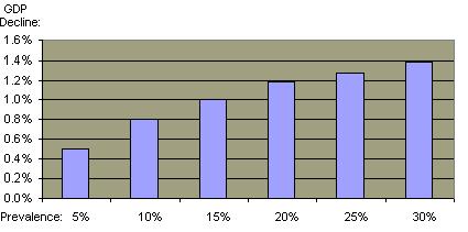 Relationship Between HIV Prevalence and Decline in Annual GDP Per Capita
