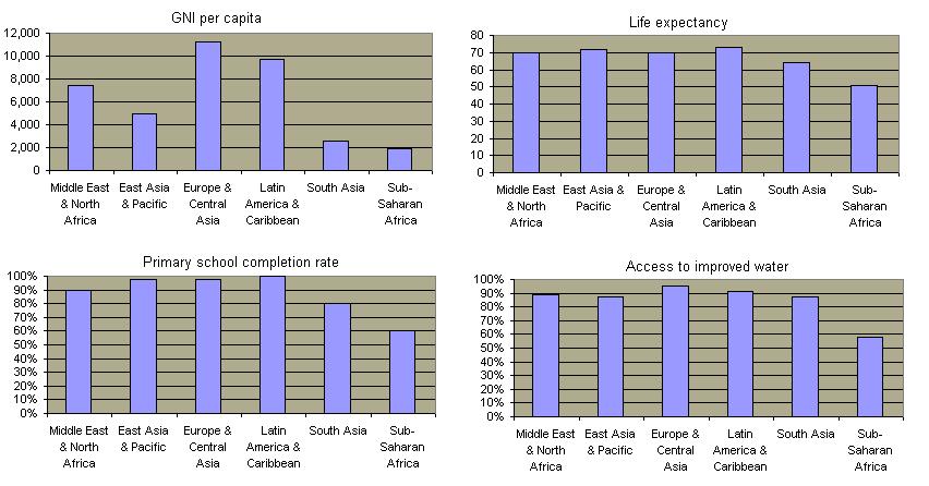 Per capita income in sub-Saharan Africa compares unfavorably with every other region in the