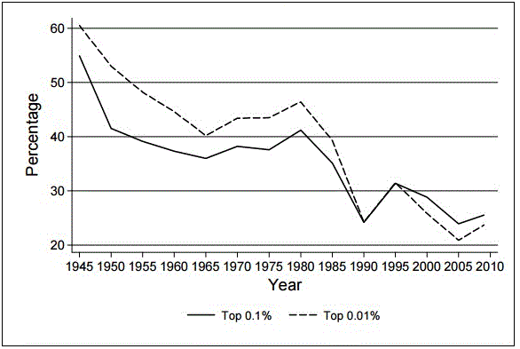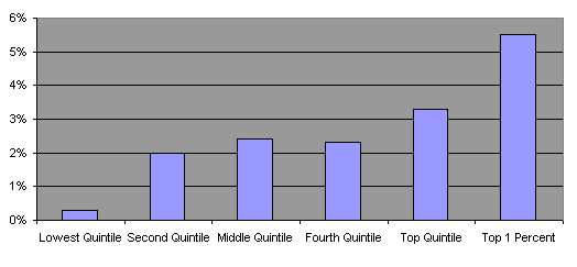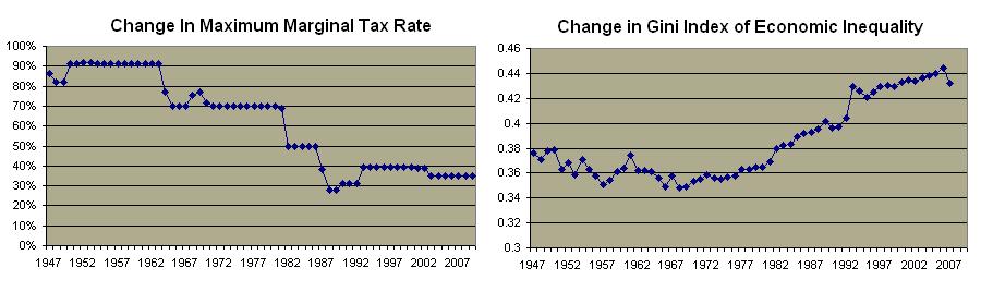 Changes in tax policy, particularly reductions in the higher marginal tax rates, have coincided with the changes in income inequality. For the wealthiest tax payers, the average tax actually paid is far lower than it was in the 1960's and 1970's. Perhaps the clearest recent example of the relationship between changes in tax policy and changes in income inequality is the effect of the Bush Administration's tax proposals enacted by Congress in 2001 and 2003. These changes sigificantly raised the after-tax income of the highest income earners while having a negligible effect on other groups.