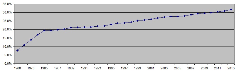 Percentage of Americans Completing College 1960-2013