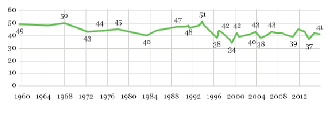 Percentage of Americans Favoring Stricter Gun Control