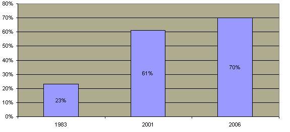 Percentage of Children Not Lving With Both Parents 1980-2004